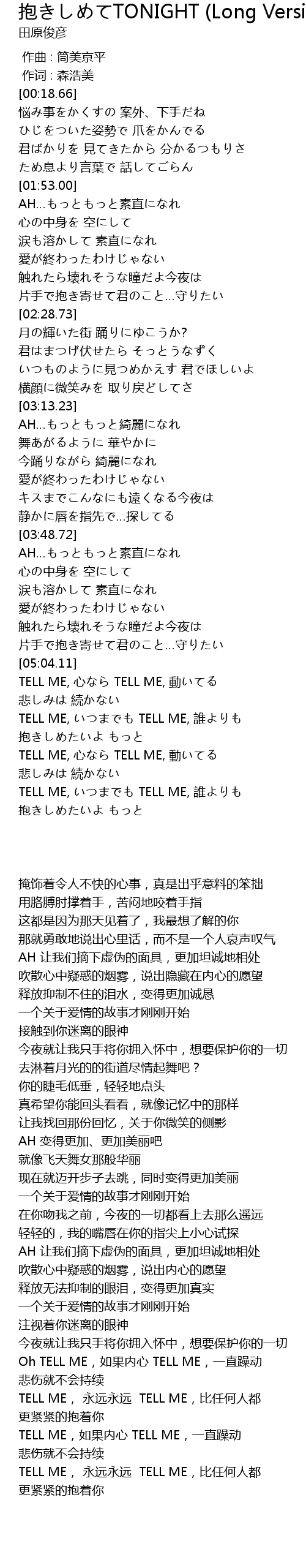 | [05:26.57] | TELL ME, いつまでも TELL ME, 誰よりも |
