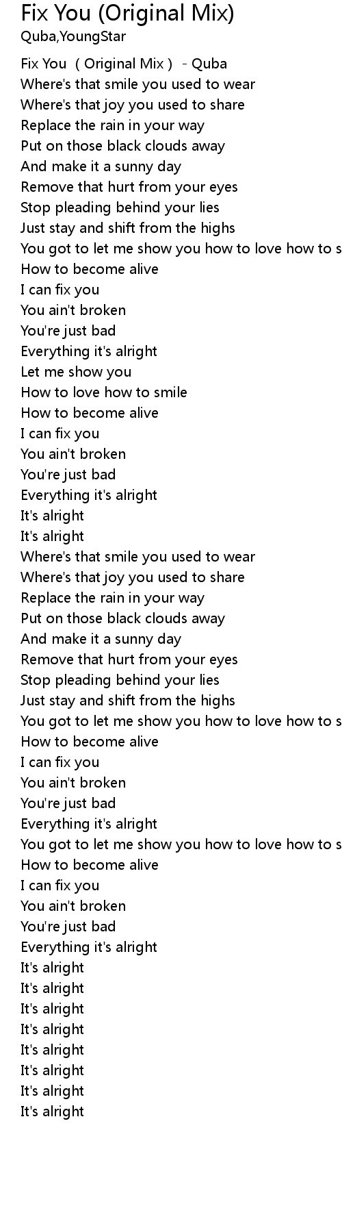 | [00:00.10] | Fix You (Original Mix) - Quba |