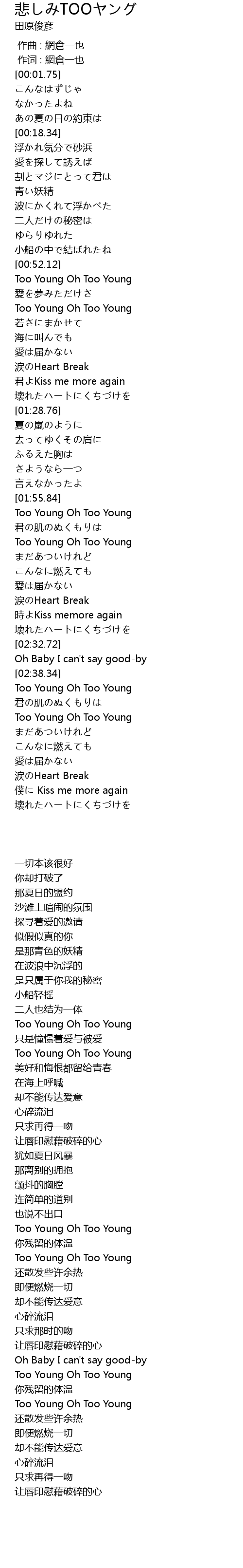 | [02:01.37] | Too Young Oh Too Young |