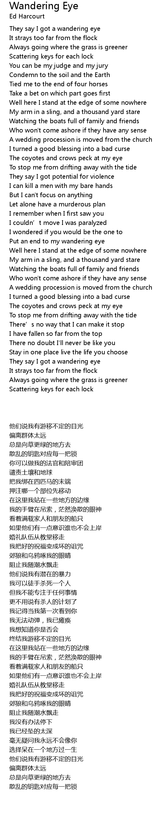 | Song | Wandering Eye |