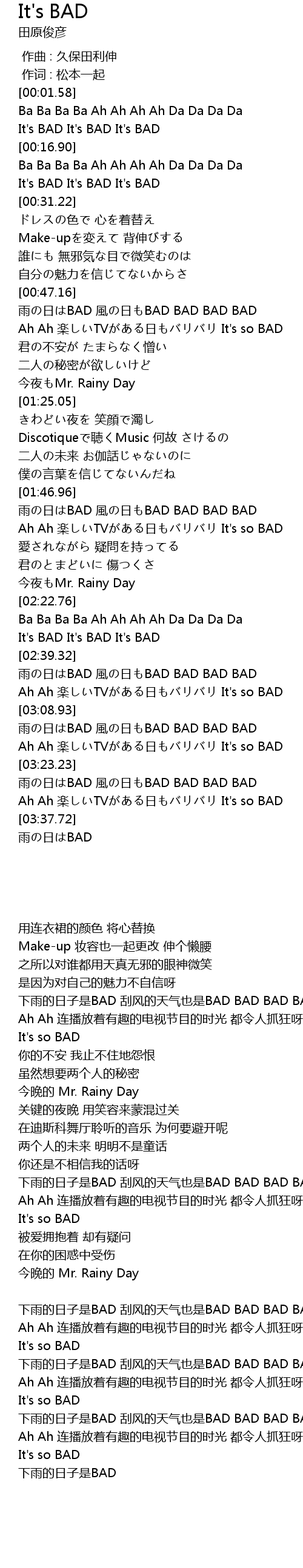| [02:35.64] | It's BAD It's BAD It's BAD |
