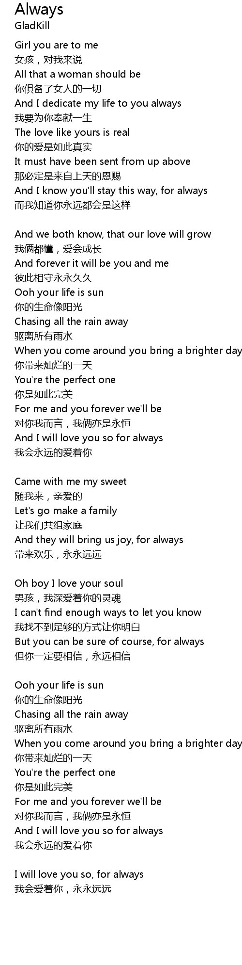 | wǒ huì yǒng yuǎn de ài zhe nǐ | |