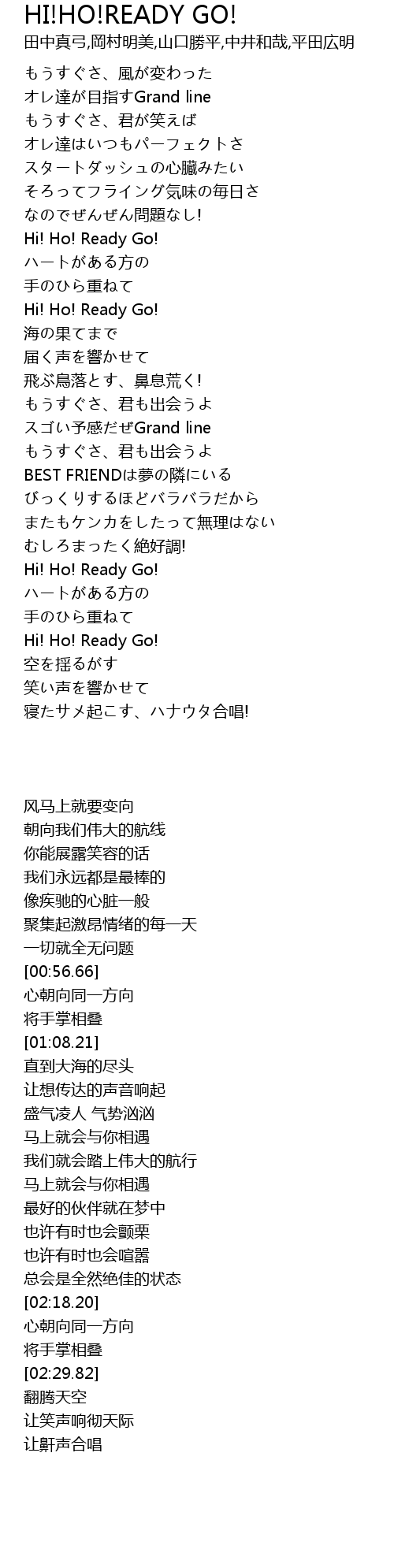 | [00:56.66] | Hi! Ho! Ready Go! |