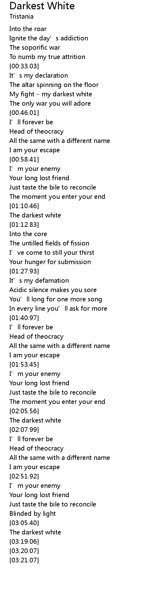 | [00:39.64] | My fight my darkest white |