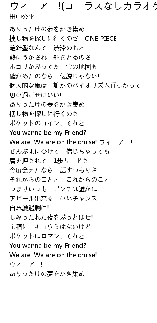 | [00:36.89] | 捜し物を探しに行くのさ ONE PIECE |