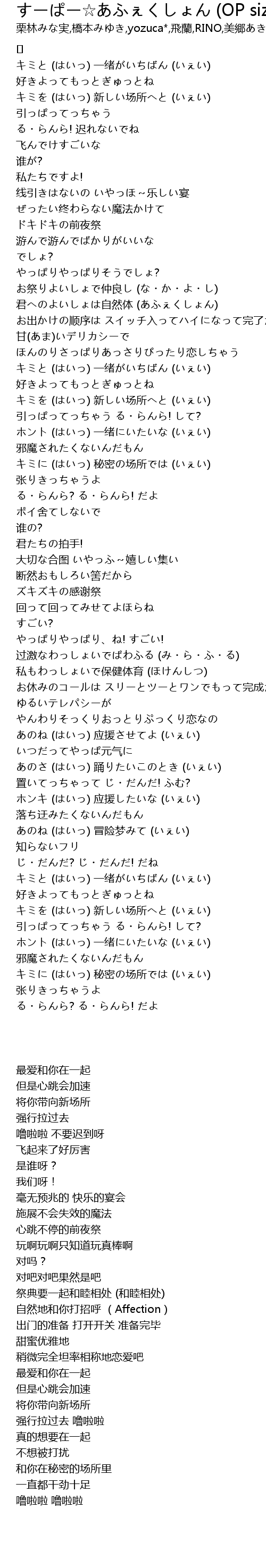 | あのね (はいっ) 应援させてよ (いぇい) | |