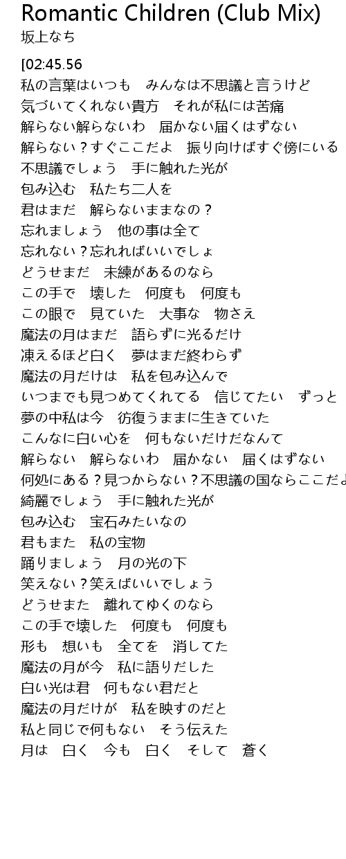 | Song | Romantic Children (Club Mix) |