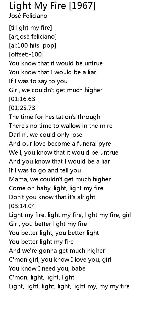 | [02:37.42] | Come on baby, light, light my fire |