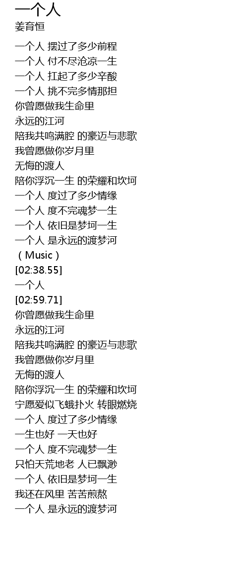 | [01:56.58] | 一个人 度不完魂梦一生 |