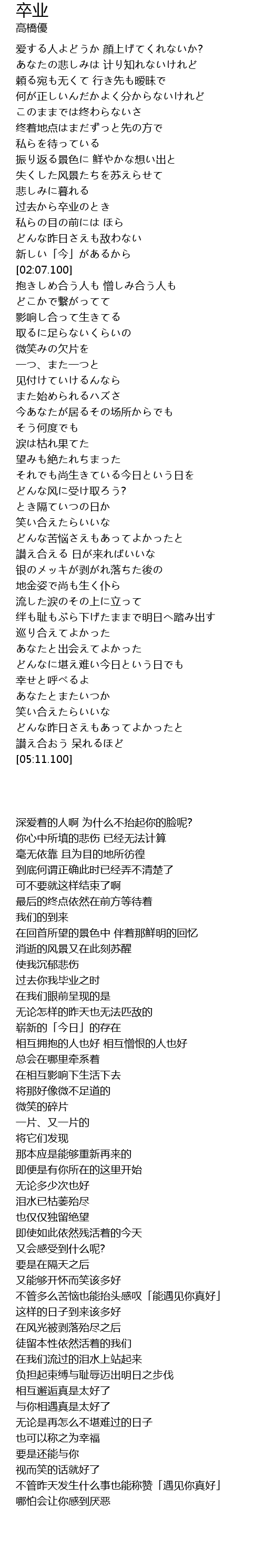 | [01:41.100] | 过去から卒业のとき |