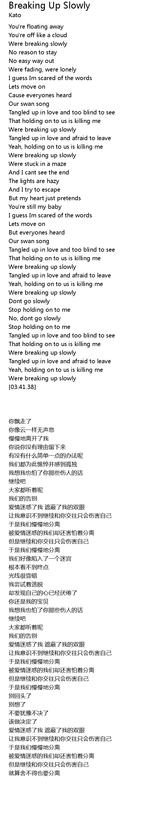 | [03:05.38] | Were breaking up slowly |
