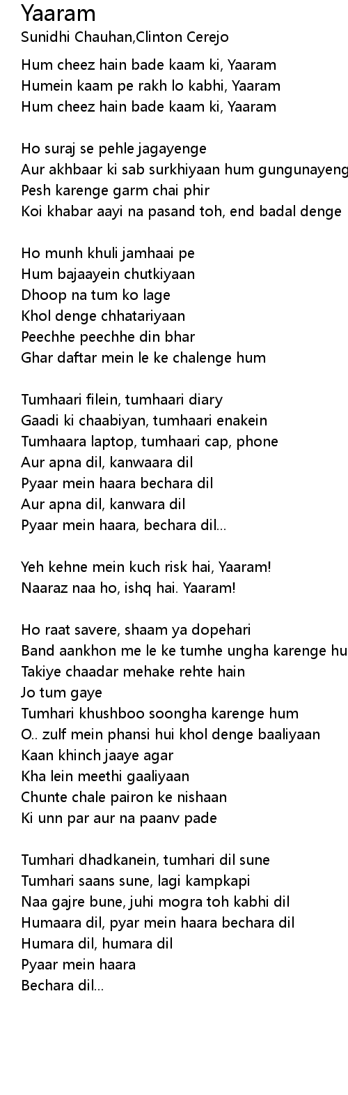 Hum cheez hain bade kaam ki, Yaaram |
