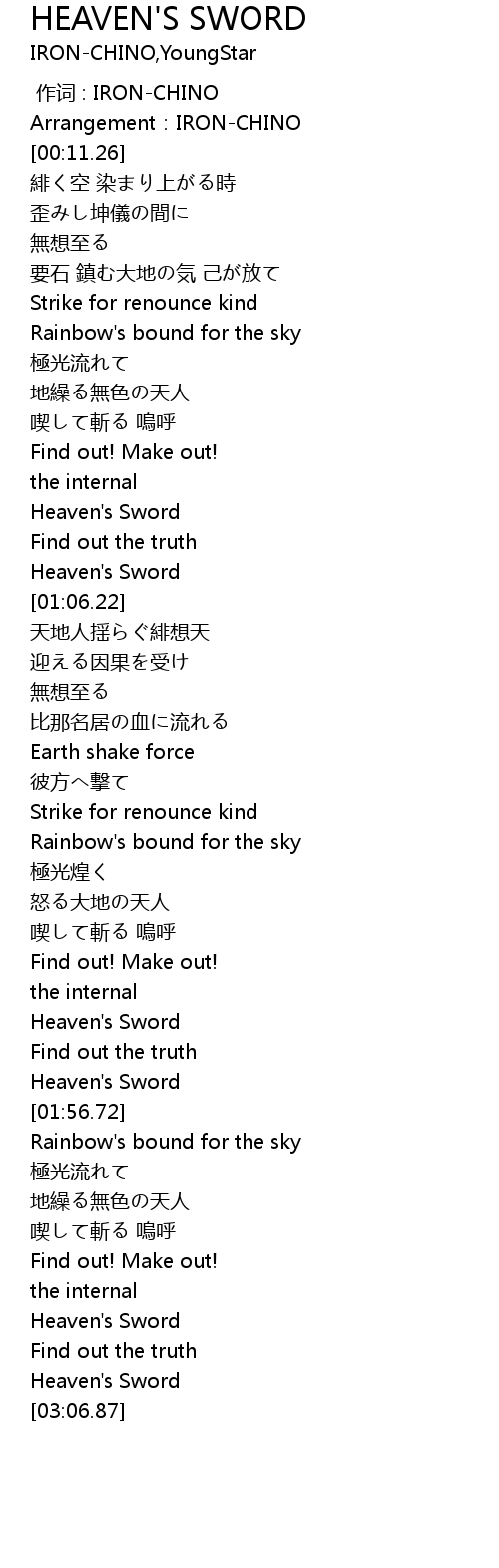 | [00:57.11] | Heaven's Sword |