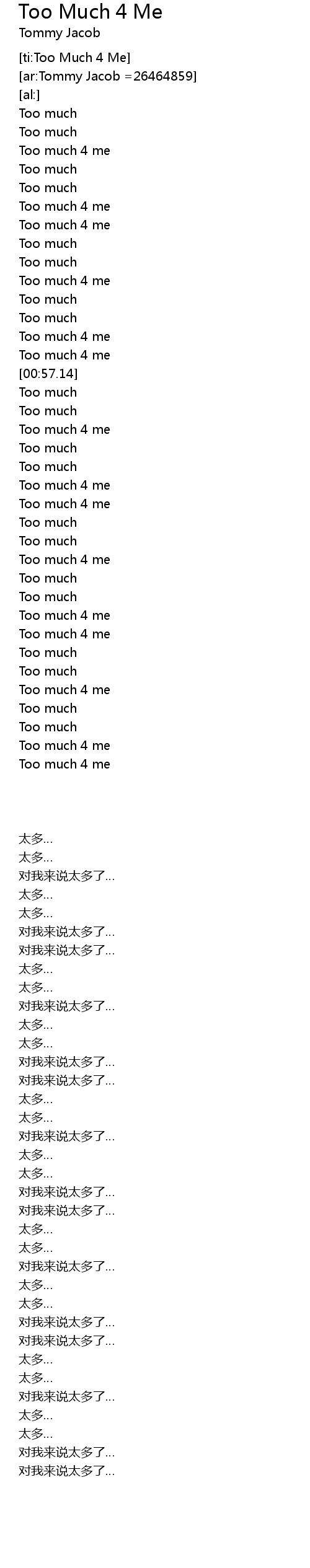 | [00:50.51] | Too much 4 me |