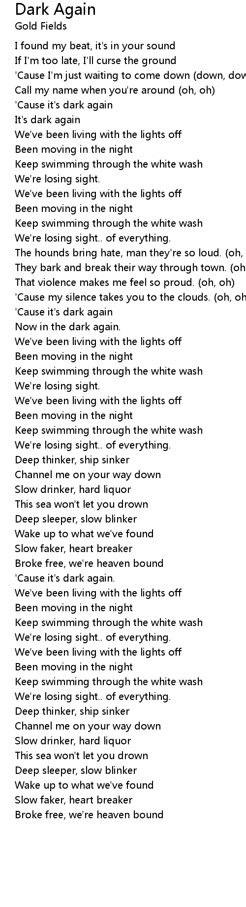 'Cause it's dark again |