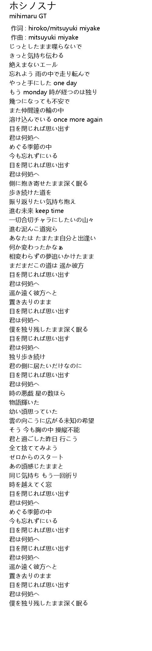 | [00:00.000] | 作词 : hiroko/mitsuyuki miyake |