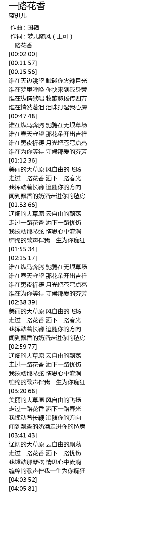 | [02:44.36] | 走过一路花香 洒下一路春光 |