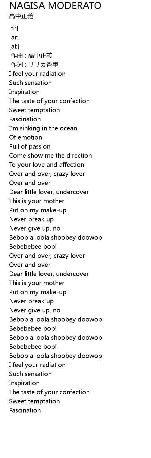 | [02:51.73] | Bebop a loola shoobey doowop |