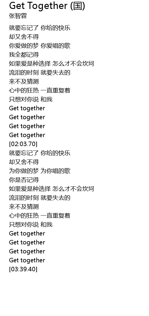 | [03:11.96] | Get together |