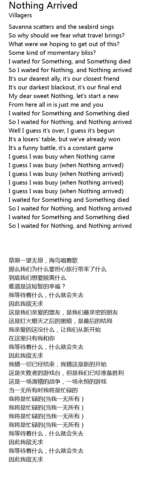So I waited for Nothing, and Nothing arrived |