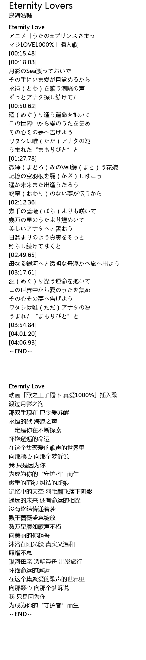 | [00:01.78] | アニメ「うたの☆プリンスさまっ マジLOVE1000%」挿入歌 |