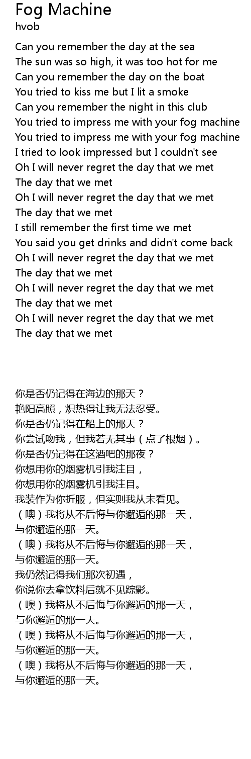 | [00:53.30] | You tried to kiss me but I lit a smoke |