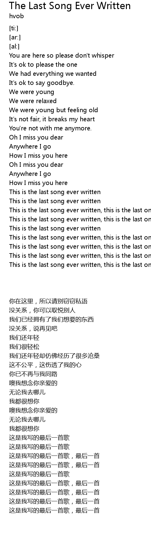 | [02:19.33] | This is the last song ever written, this is the last one |