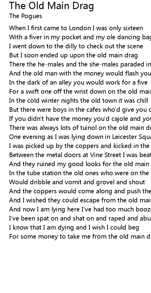For some money to take me from the old main drag |