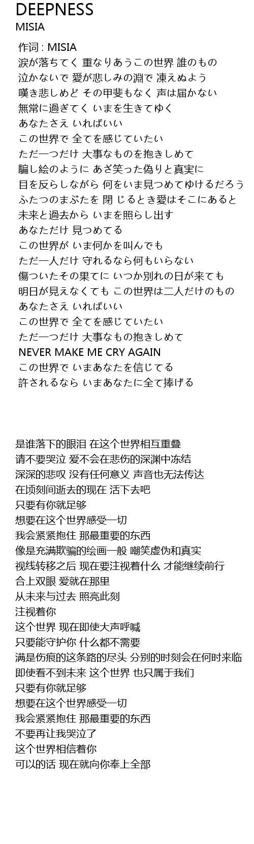 | [00:00.00] | 作词 : MISIA |