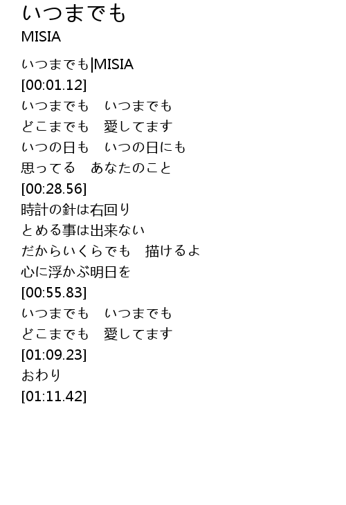 | [00:00.34] | いつまでも|MISIA |