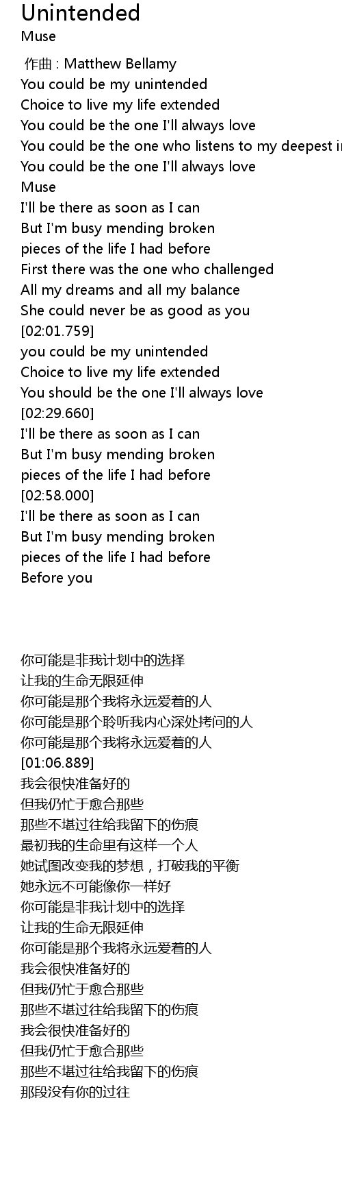 | [02:04.270] | you could be my unintended |