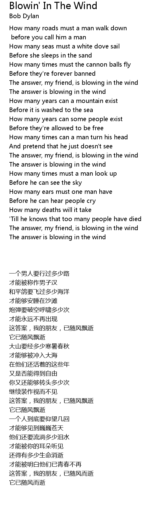 The answer is blowing in the wind |