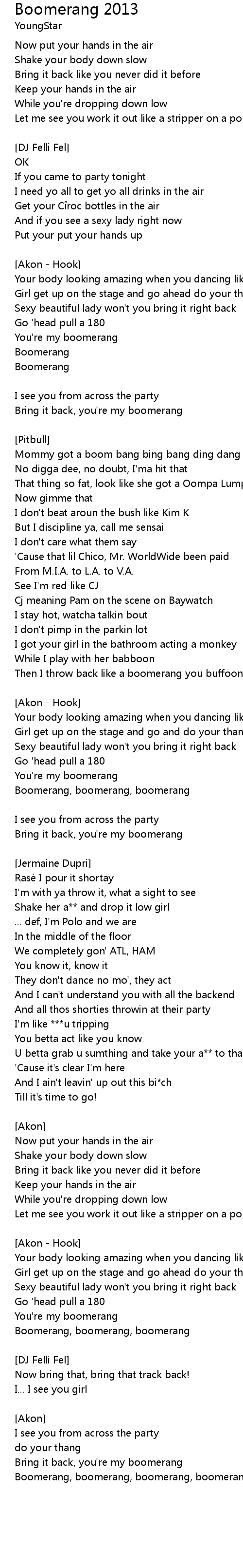 | Bring it back, you' re my boomerang | |
