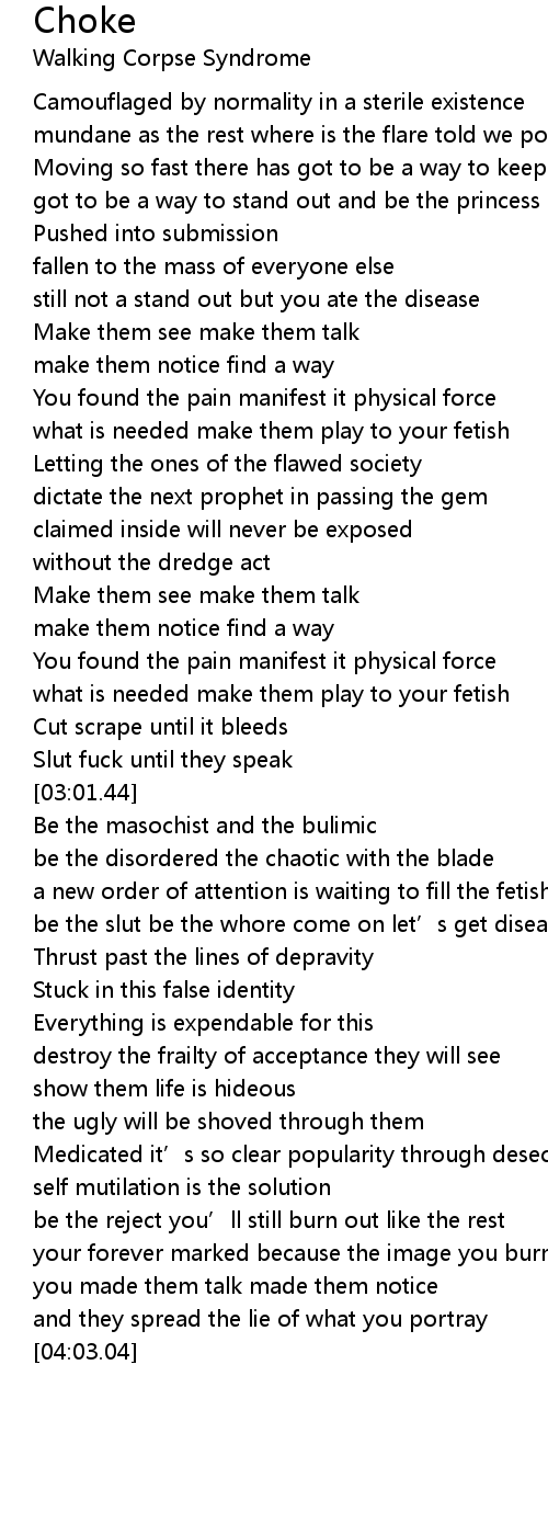 | [03:25.72] | be the slut be the whore come on let’s get diseased |