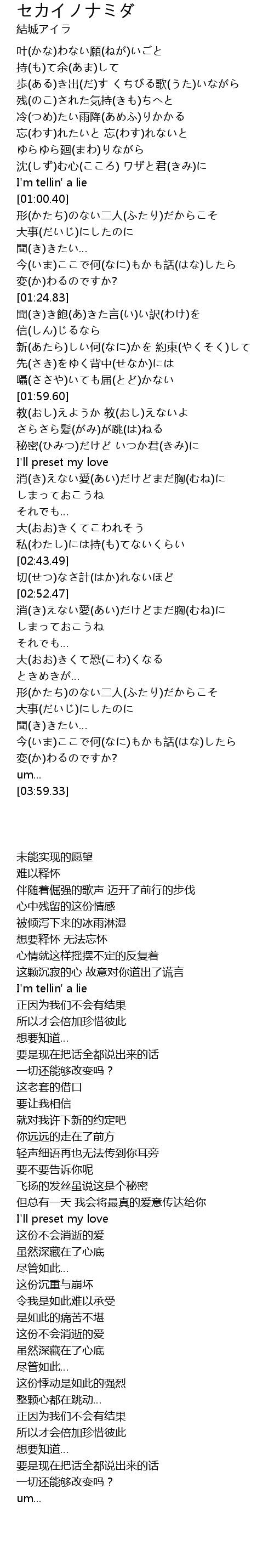 | [00:58.36] | I'm tellin' a lie |