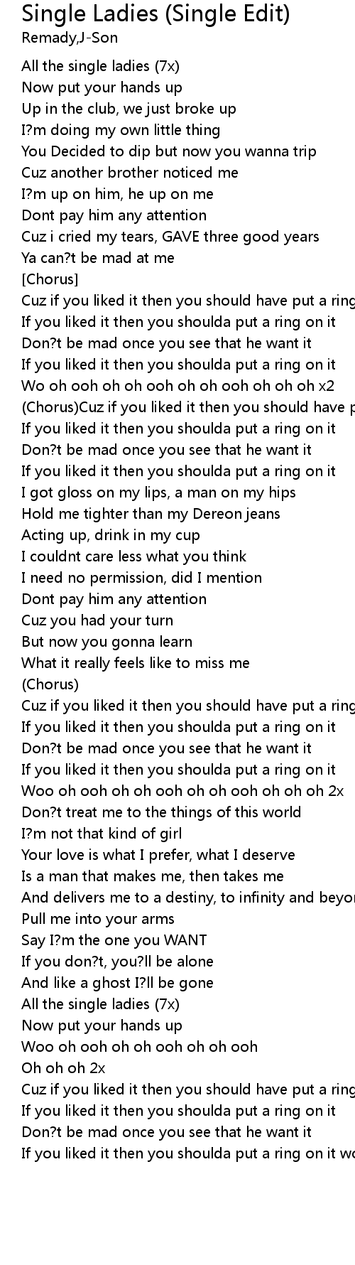 | If you liked it then you shoulda put a ring on it woo oh ooh 2x |