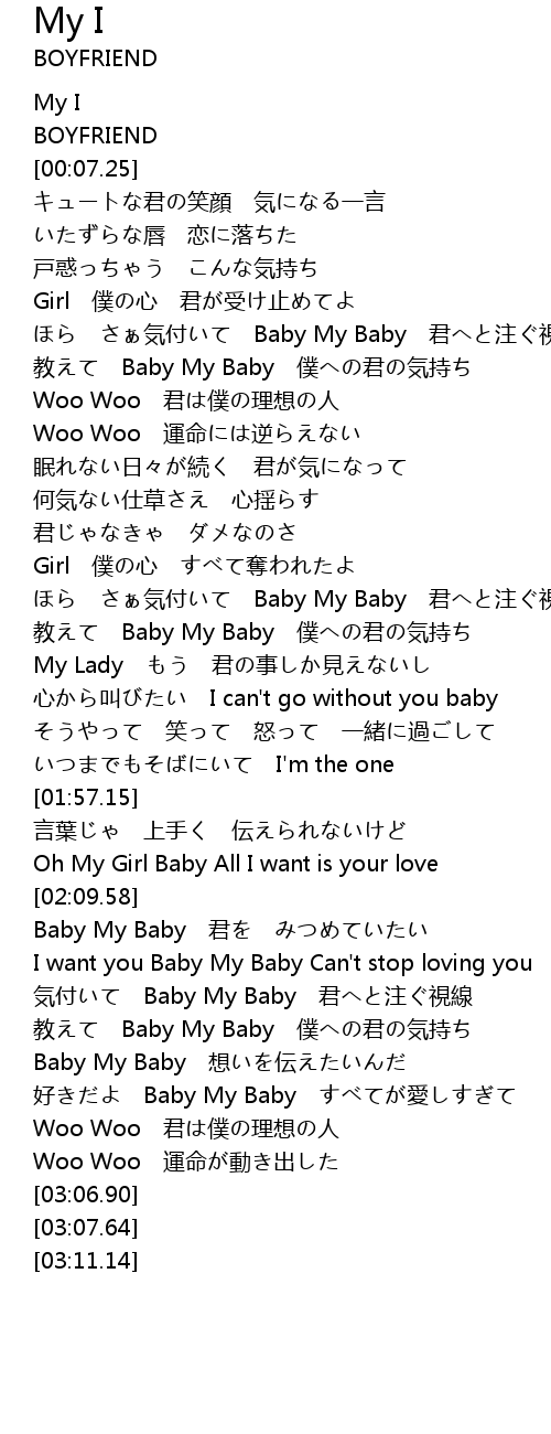 | [02:23.40] | 気付いて Baby My Baby 君へと注ぐ視線 |