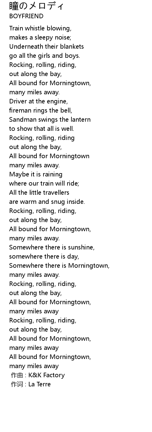 | Somewhere there is Morningtown, | |
