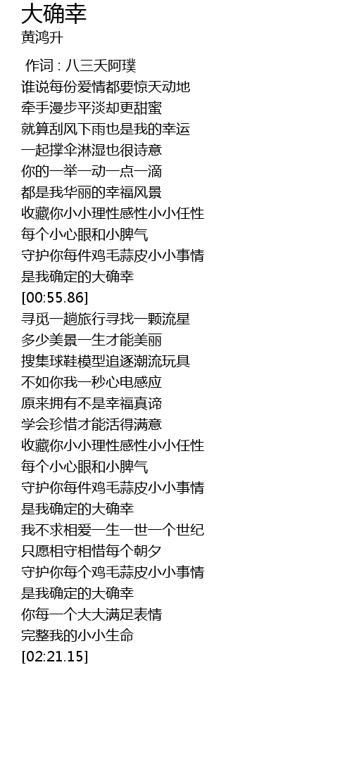 | [02:04.20] | 是我确定的大确幸 |