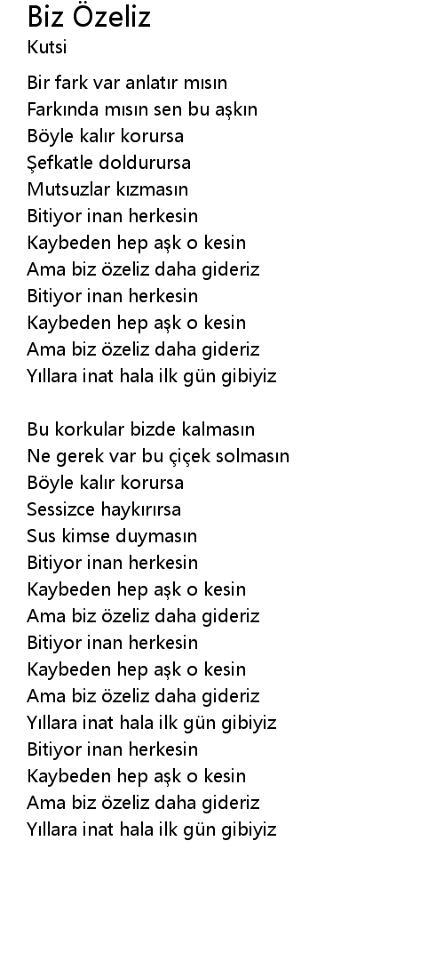 | Ama biz özeliz daha gideriz | |