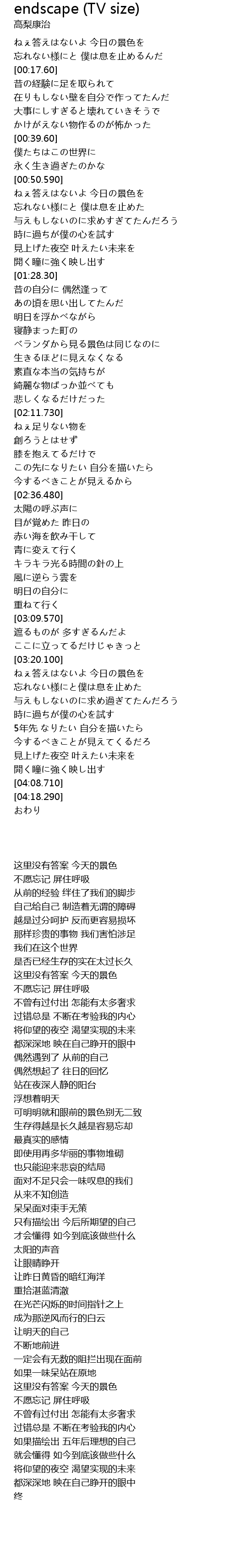 | [00:05.530] | ねぇ答えはないよ 今日の景色を |