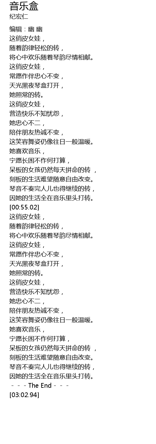 | [02:03.42] | ---The End--- |