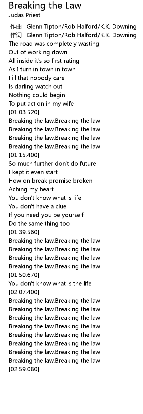 | [02:41.430] | Breaking the law, Breaking the law |
