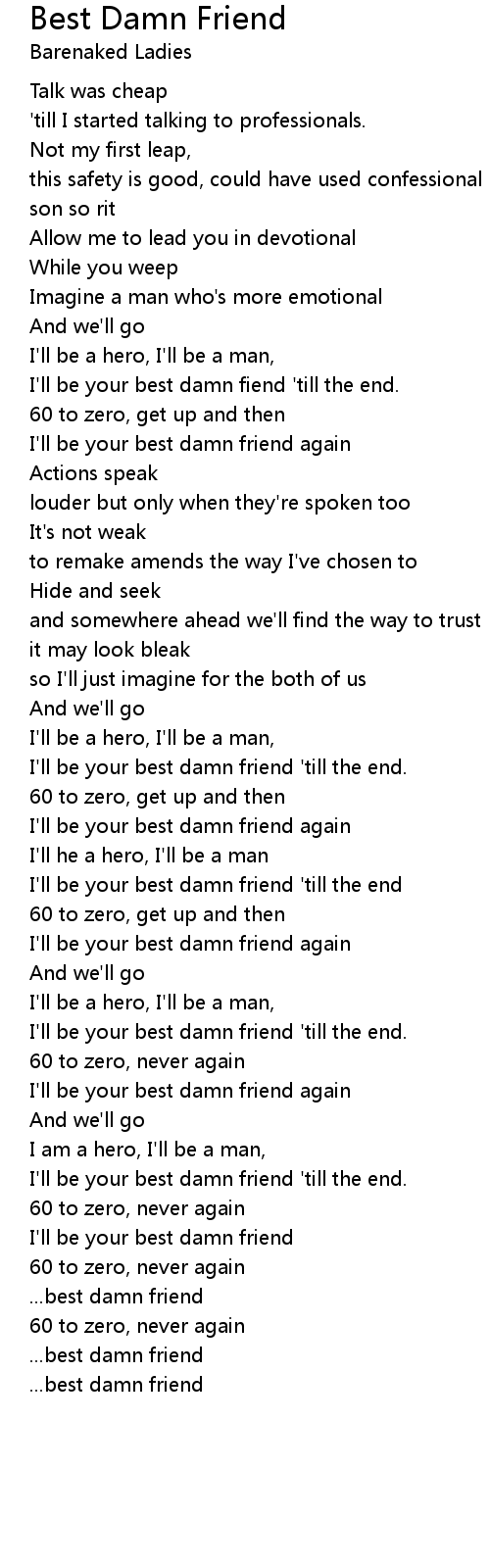 I'll be your best damn friend 'till the end. |