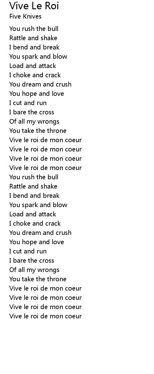 Vive le roi de mon coeur |