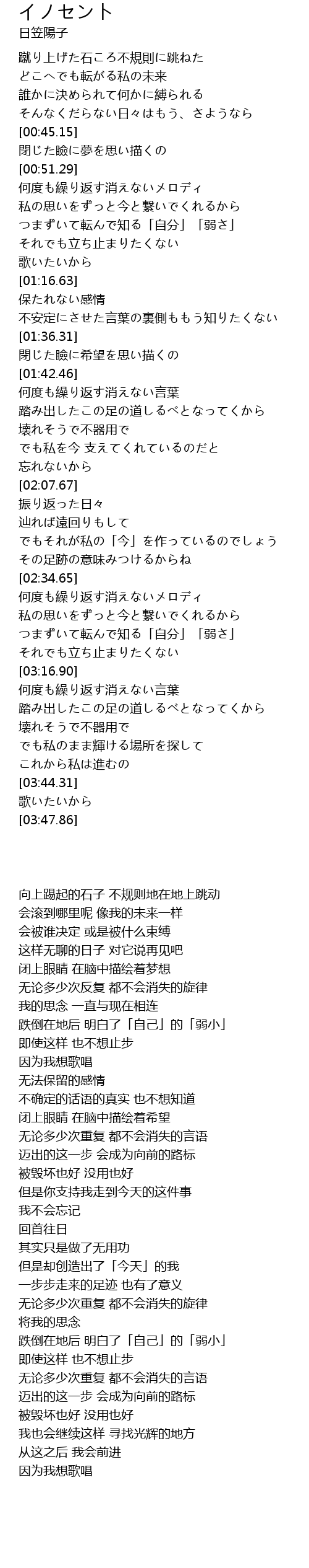 | [02:20.43] | でもそれが私の「今」を作っているのでしょう |