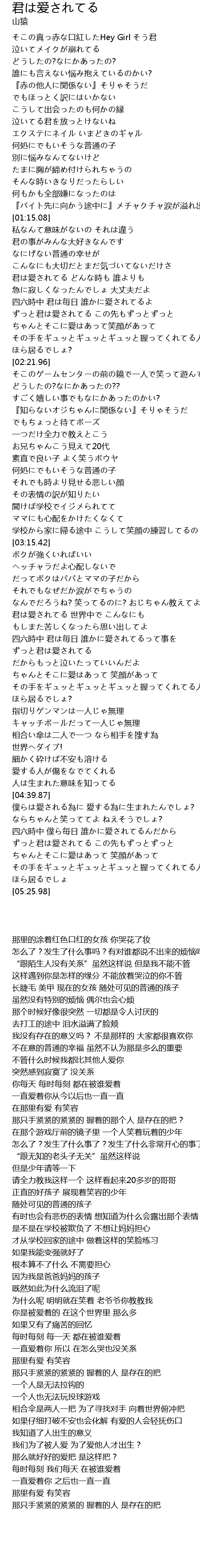 | [01:50.17] | 四六時中 君は毎日 誰かに愛されてるよ |