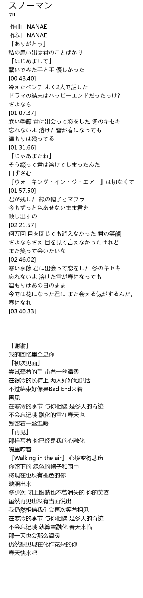 | [00:00.00] | zuò qǔ : NANAE |
