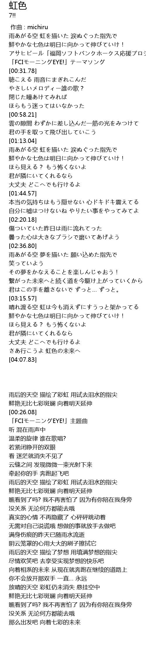 | [03:35.83] | 鮮やかな七色は明日に向かって伸びていけ! |