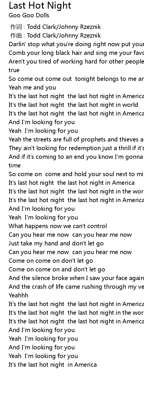| [00:47.77] | It' s the last hot night the last hot night in America |